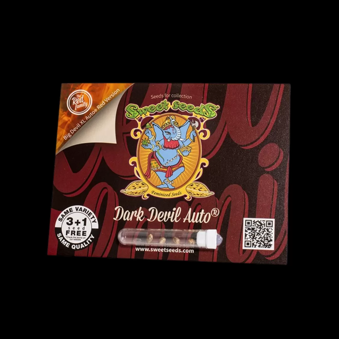 Dark Devil Auto® è una varietà autofiorente di 5ª Generazione appartenente alla celebre Red Family di Sweet Seeds®, ottenuta dall’incrocio tra la premiata Big Devil XL Auto® (SWS28) e una genetica esotica dai fiori viola proveniente dalle montagne dell’Hindu Kush.