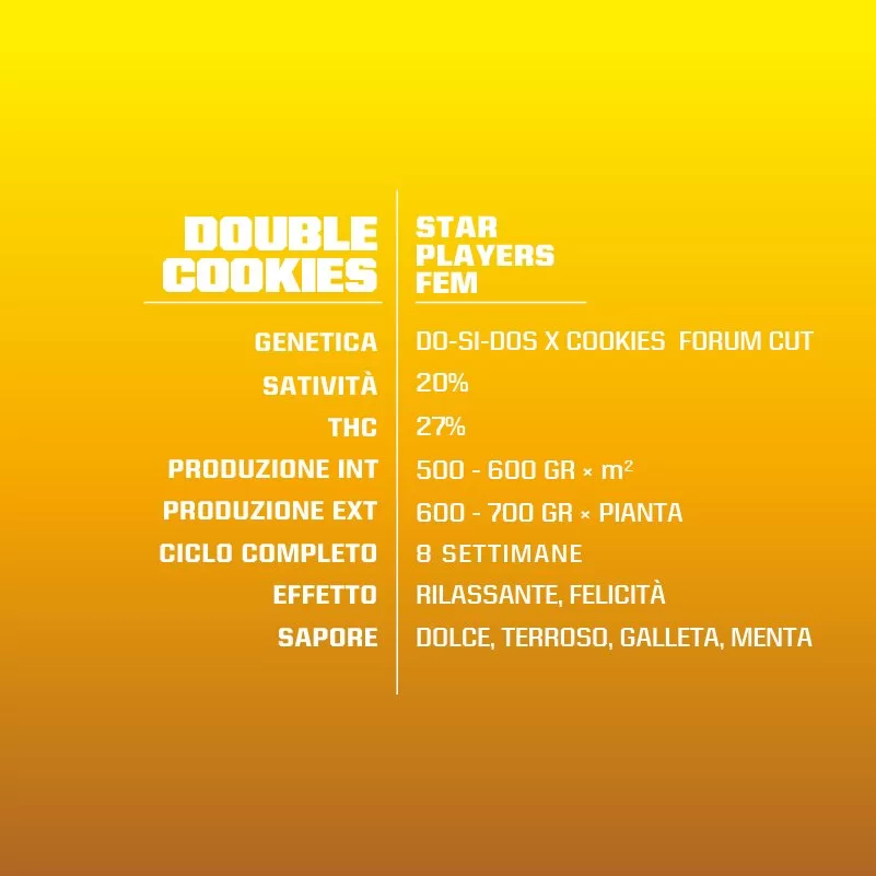 Double Cookies Feminizzata, riscatta il sapore vero e intenso della genetica Girl Scout Cookies, un mix squisito di biscotti appena sfornati con fini tocchi di menta e cioccolato. Senza dubbio, un odore e sapore unico che rimarrà nella mente e palato per vari minuti.