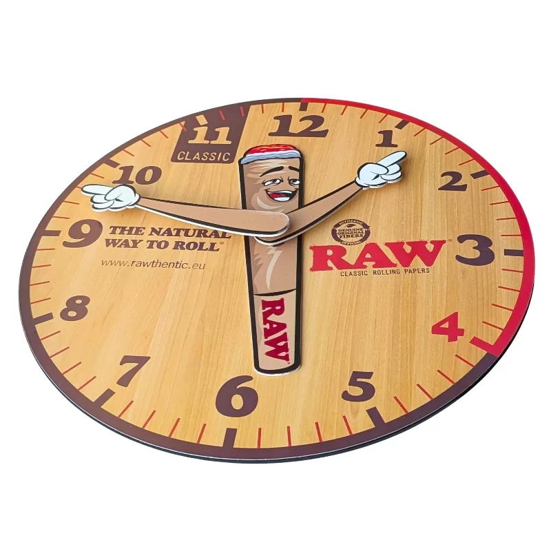 Ideale per qualsiasi spazio dedicato agli appassionati, l’orologio da parete RAW non solo aggiunge un elemento decorativo, ma riflette anche l’attenzione al dettaglio e l’impegno per la qualità che caratterizzano il marchio RAW nel settore della cannabis.