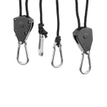 I ganci a moschettone, dotati di un cancello a molla, assicurano che le tue lampade siano sempre fissate in modo sicuro, evitando qualsiasi rischio di scivolamento. Grazie al sistema di clip a scorrimento, puoi facilmente regolare l’altezza delle luci in base alla crescita delle tue piante, ottimizzando così la loro esposizione alla luce.