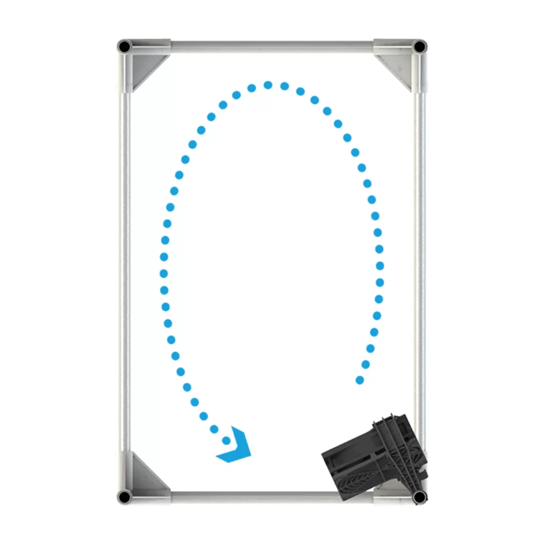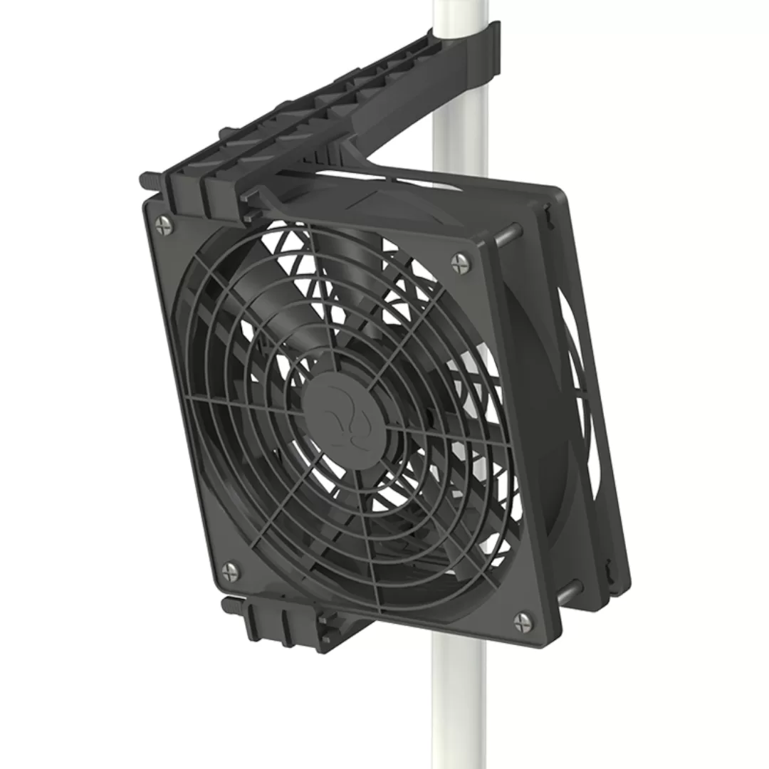 Design compatto: Ø 120 mm, si fissa su pali di 16–19 mm e può essere orientato a ±15° per indirizzare il flusso d’aria sopra o sotto la chioma.